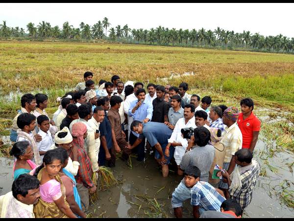 ఈ నేపథ్యంలో ఆయన పశ్చిమ గోదావరి జిల్లా నర్సాపురంలో పర్యటిస్తున్నప్పుడు ఓ పొలంలోకి వెళ్లి అంగరక్షకుడిని ఆసరాగా పెట్టుకొని మైకులో మాట్లాడారు. వరి పొలంలోకి వెళ్లిన జగన్ రైతులను ఉద్దేశించి మైకులో మాట్లాడారు.