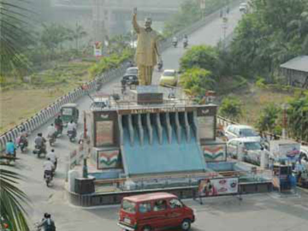 అప్పట్లో వైఎస్ చేపట్టిన జలయజ్ఞానికి ప్రశంసపూర్వకంగా 2009లో బెజవాడ ఎంపీ లగడపాటి రాజగోపాల్ ఈ విగ్రహాన్ని ఏర్పాటు చేశారు. పోలవరం డిజైన్ పై ఏర్పాటు చేసిన ఈ భారీ వైఎస్ విగ్రహాన్ని రోడ్డు విస్తరణ పనుల్లో భాగంగా అధికారులు తొలగించేశారు. భారీ ప్రొక్లెయినర్స, క్రెయిన్ల సహాయంతో విగ్రహాన్ని కూల్చివేశారు.