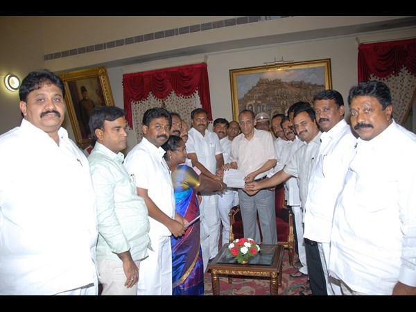 వైయస్సార్ కాంగ్రెస్ పార్టీ ఎమ్మెల్యేలు ఉప్పులేటి కల్పన, జి శ్రీకాంతరెడ్డి, ఎ సురేష్, సి ఆదినారాయణ రెడ్డి, అంజాద్ భాషా, కె శ్రీనివాసులు, వై సాయిప్రసాద్ రెడ్డి, ఎస్ రఘురామిరెడ్డి, కంబాల జోగులు తదితరులు రాజ్భవన్కు వెళ్లి గవర్నర్ నరసింహన్ను కలిసి ఈ మేరకు వినతిపత్రం సమర్పించారు.
