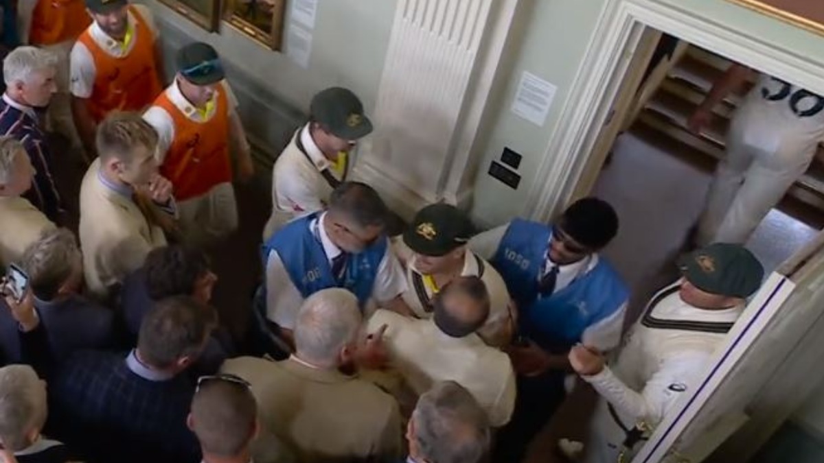 ఈ మ్యాచ్లో జానీ బెయిర్స్టో అవుట్ అయిన తీరు దుమారం రేపుతోంది. ఆస్ట్రేలియన్ల తీరుపై ఇంగ్లాండ్ ఫ్యాన్స్ భగ్గుమన్నారు. ప్లేయర్లతో గొడవకు దిగారు. వారు లంచ్కు వెళ్తోన్న సమయంలో ఆస్ట్రేలియా ప్లేయర్లపై మాటల దాడికి దిగారు. ఓ అభిమాని ఉస్మాన్ ఖవాజా చెయ్యి పట్టుకుని పక్కకు లాగాడు. అతనితో వాదులాటకు దిగారు.