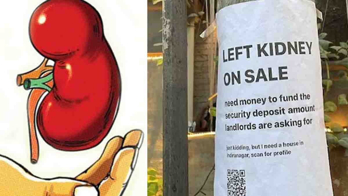 ఓ వ్యక్తి తాను బెంగళూరులోని ఇందిరానగర్లో అద్దెకు తీసుకునేందుకు ఏకంగా తన కిడ్నీని అమ్మేందుకు సిద్ధమయ్యాడు. తాను తన లెఫ్ట్ కిడ్నీని అమ్మేందుకు సిద్ధమని, కొనేవారుంటే సంప్రదించాలంటూ కొన్ని పోస్టర్లను నగరంలో అంటించాడు. బెంగళూరులో అద్దె కంటే డిపాజిట్ మొత్తం భారీగా ఉంటుందని, అంత మొత్తం తాను కట్టలేనని వాపోయాడు.