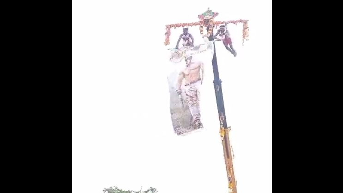 వీపులోకి ఇనుప హుక్స్ను గుచ్చుకుని వాటికి వేలాడుతూ సుబ్రహ్మణ్య స్వామివారికి తమ మొక్కులను చెల్లించుకుంటారు. ఈ నేపథ్యంలో ఇద్దరు అభిమానులు వంద అడుగుల ఎత్తు ఉన్న క్రేన్కు వేలాడుతూ జూనియర్ ఎన్టీఆర్ భారీ ఫ్లెక్సీని ఆవిష్కరించారు. జూనియర్కు అనుకూలంగా నినాదాలు చేశారు. కాబోయే సీఎం అంటూ నినదించారు. దీనికి సంబంధించిన ఓ వీడియో సోషల్ మీడియాలో వైరల్గా మారింది.