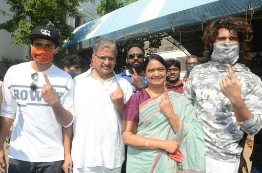 గ్రేటర్ ఎన్నికల్లో భాగంగా ఓటు హక్కు వినియోగించుకున్న సినీ హీరో రాజశేఖర్ ఆయన సతీమణి జీవిత