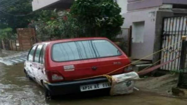 ఇటీవలి వర్షాలకు హైదరాబాద్లో చాలా కాలనీలు నీట మునిగి ఇళ్ల ముందు పార్క్ చేసిన వాహనాలు గల్లంతైన సంగతి తెలిసిందే. ఈ నేపథ్యంలో ఓ హైదరాబాద్ వాసి ముందు జాగ్రత్తగా... ఇంటి ముందు పార్క్ చేసిన తన కారును తాడుతో గేటుకు కట్టేశాడు. దీంతో ఇక ఎంత వరద వచ్చినా... కారు ఎక్కడికి కొట్టుకుపోదన్న నమ్మకం. ఈ కారుకు సంబంధించిన ఫోటో ప్రస్తుతం సోషల్ మీడియాలో వైరల్గా మారింది. దీంతో నెటిజన్స్ పలు ఫన్నీ కామెంట్స్తో పాటు ఫన్నీ మీమ్స్తో దీన్ని మరింత వైరల్ చేస్తున్నారు.