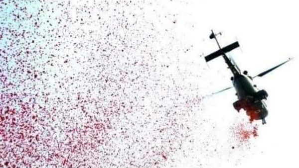 సెల్యూట్ టు కరోనా వారియర్స్: గాంధీ ఆస్పత్రిపై హెలికాప్టర్లతో పూల వర్షం