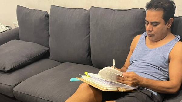 ఒంటిపై బనియన్.. సోఫాలో కూర్చొని ఫైల్స్ వర్క్.. మంత్రి కేటీఆర్ ఫోటో వైరల్