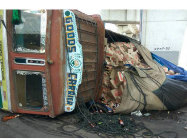 దీంతో వాటిని దొంగలించేందుకు స్థానికులు ఎగబడ్డారు. వెంటనే అక్కడికి చేరుకున్న పోలీసులు బీరు సీసాలు చోరీకి గురికాకుండా కాపలా కాస్తున్నారు. అంతే కాకుండా నగరంలోని జీవీకే మాల్ వద్ద సోమవారం ఉదయం ఆయిల్ లీకై బీరు పెట్టెలను తీసుకెలుతున్న లారీ రోడ్డుపై పడిపోయింది. దీంతో అనేక వాహనాలు జారి పడి పలువురికి గాయాలయ్యాయి.