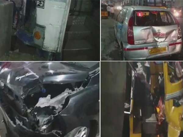 పాదచారిని ఢీకొట్టి అదుపుతప్పడంతో అలాగే ముందుకొచ్చిన బస్సు ఓ కారును తాకింది. అందులో ప్రయాణిస్తున్నవారికి ఎలాంటి ప్రమాదం జరగలేదు. ఆ కారు వెనకాలే ఉన్న రెండు ఆటోలను ఢీకొట్టడంతో ఓ ఆటో డ్రైవర్ కు గాయాలయ్యాయి. అలాగే ఓ ద్విచక్రవాహనదారుడికి తాకడంతో స్వల్పగాయాలయ్యాయి. ఒక మహిళను ఢీకొట్టడంతో ఆమె తలకు గాయాలయ్యాయి. సమాచారమందుకున్న పోలీసులు ఘటనాస్థలికి చేరుకుని గాయపడ్డవారిని చికిత్స నిమిత్తం గాంధీ ఆసుపత్రికి తరలించారు.