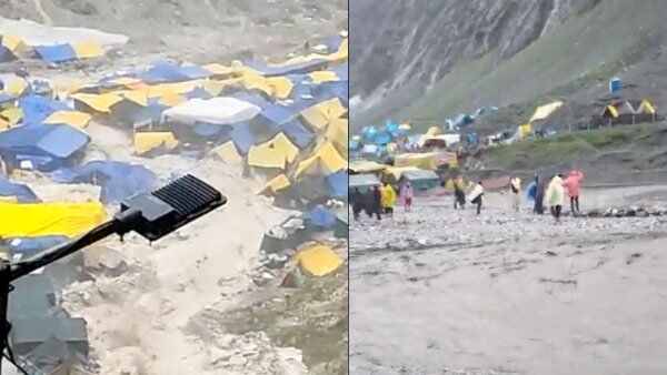 వరదల నేపథ్యంలో యాత్రను తాత్కాలికంగా నిలిపివేశారు. కాగా, 3,880 మీటర్ల ఎత్తైన గుహ మందిరంలో 6,100 మందికి పైగా అమర్నాథ్ యాత్రికుల పదో బ్యాచ్ జమ్మూ నుంచి అనంతనాగ్లోని నున్వాన్-పహల్గామ్, గండేర్బల్లోని బల్తాల్ జంట బేస్ క్యాంపుల కోసం శుక్రవారం బయలుదేరింది.