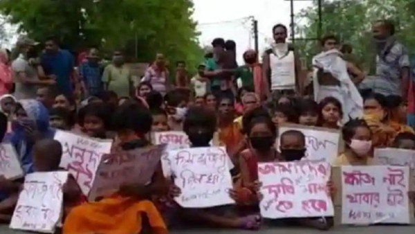 రాష్ట్రంలో నిత్యావసర వస్తువుల కొరత లేదని సీఎం మమతా బెనర్జీ స్పష్టంచేశారు. పేదలకు ఉచితంగా అందజేసే సరుకులకు లోటులేదని పేర్కొన్నారు. కానీ గత 20 రోజుల నుంచి డొమకల్ మున్సిపాలిటీలోని కొన్ని కుటుంబాలకు సరుకులు మాత్రం అందడం లేదు. దీంతో బుధవారం ఉదయం బెర్హమ్పూర్ డొమకల్ రహదారి మీద బైఠాయించారు. వారిలో చాలామంది మహిళలు, చిన్నారులు ఉన్నారు. అయితే వారు మాస్క్ ధరించకపోవడం, సోషల్ డిస్టన్స్ పాటించకపోవడం ఆందోళన కలిగిస్తోంది.