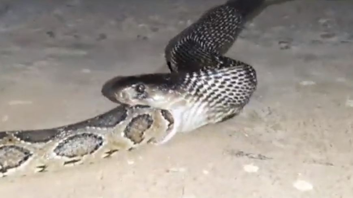 అంత పెద్ద కొండచిలువను అమాంతం మింగిన కింగ్ కోబ్రా
