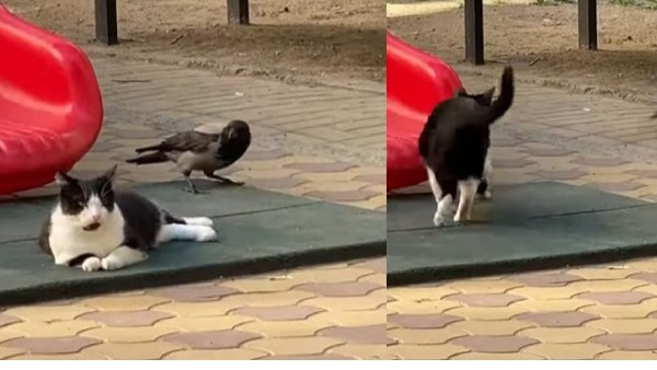 ఇలా కాకి పిల్లి దగ్గరికి వస్తూ దూరంగా వెళ్తోంది. చివరికి పిల్లి లేచి కాకి వద్ద వెళ్లే క్రమంలో కాకి ఆకాశంలోకి ఎగురుతుంది. ఇందుకు సంబంధించిన వీడియో సోషల్ మీడియాలో వైరల్ అవుతోంది. రెండు రోజుల క్రితం ఈ వీడియోను ఇన్ స్టాగ్రామ్ లో పోస్ట్ చేశారు. ఈ వీడియోకి 45,000 పైగా లైక్లు, చాలా కామెంట్లు వచ్చాయి.