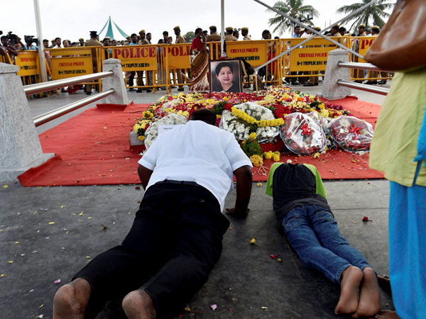 చెన్నై: తమ ఆరాధ్య నేతకు నివాళులు అర్పించేందుకు మెరీనా బీచ్ లోని అమ్మ సమాధి వద్దకు తమిళ జనం పోటెత్తుతూనే ఉన్నారు. పలువురు ప్రముఖులు, సామాన్యుల తాకిడితో అమ్మ సమాధి వద్ద జనం రద్దీ ఎక్కువగానే ఉంది.