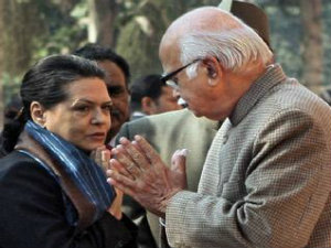 సోనియాకు నమస్తే చెప్పిన అద్వానీ, పలకరింపు