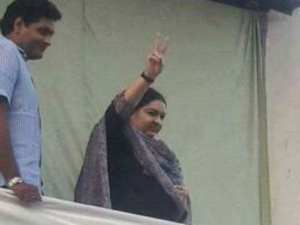 అన్నాడీఎంకే కార్యకర్తలు పెద్ద సంఖ్యలో ఇంటి దగ్గరకు రావడంతో దీపా జయకుమార్ బాల్కనీ నుంచి కార్యకర్తలకు అభివాదం చేస్తున్నారు. అచ్చం జయలలితలాగే ఉండే దీపా అమ్మ లాగే రెండు వేళ్లు పైకి చూపించి కార్యకర్తలకు అభివాదం చేస్తున్నారు. జయలలిత లాగే అందరికి నమస్కారం చేస్తున్నారు.