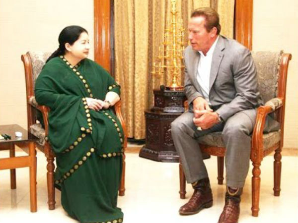 సమాచారం మేరకు.. అర్నాల్డ్ ష్వార్జ్నెగ్గర్ తమిళనాడు సీఎం జయలలిత గురించి గతంలో విన్నారు. ఆమెతో భేటీ కావాలని భావించారు. జయతో భేటీ కోసం అర్నాల్డ్ టీం ముఖ్యమంత్రి కార్యాలయానికి కొద్ది రోజుల క్రితం సమాచారం పంపించింది. భేటీ అనంతరం ష్వార్జ్నెగ్గర్ కెమెరాలకు పోజులు ఇచ్చారు. అనంతరం ఆయన అక్కడి నుండి ఆడియో లాంచ్ కార్యక్రమానికి వెళ్లారు. కాగా, జయలలిత ప్రవేశ పెట్టిన పథకాలను ష్వార్జ్నెగ్గర్ ప్రశంసించినట్లుగా తెలుస్తోంది.