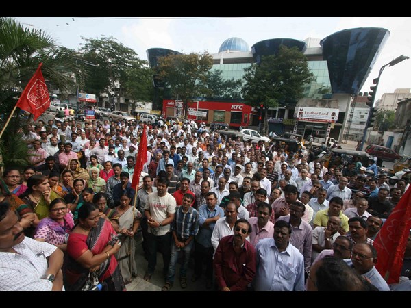 దేశవ్యాప్తంగా 21 ఉద్యోగ సంఘాలు ఈ సమ్మెకు మద్దతు పలికాయి. ఇందులో భాగంగా కోఠిలోని స్టేట్ బ్యాంక్ ఆఫ్ ఇండియా ఉద్యోగులు సమ్మె చేస్తున్న దృశ్యం.