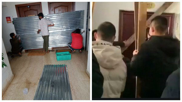ఎవరికైనా కరోనా వైరస్ పాజిటివ్ అని వెలుగు చూస్తే వారి ఇళ్లతో పాటు ఆ ప్రాంతాన్ని సీల్ డౌన్ చేస్తున్నారు. అపార్ట్ మెంట్ లో నివాసం ఉంటున్న మహిళకు, ఆమె ఇద్దరు చిన్న పిల్లలకు కరోనా పాజిటివ్ అని తెలిస్తే ఆమె ఫ్లాట్ ను సీల్ డౌన్ చెయ్యాలి, లేదా అపార్ట్ మెంట్ గేట్ కు తాళం వేసి లాక్ డౌన్ చెయ్యాలి. చైనాలో లాగా కరోనా పాజిటివ్ లక్షణాలు ఉన్న ఇంటిని ఇనుప రేకులతో ఎలా సీల్ చేశారో అచ్చం అలాగే బెంగళూరులో రేకుల షీట్లతో సీల్ చెయ్యడంతో నెటిజన్లు మండిపడుతున్నారు.