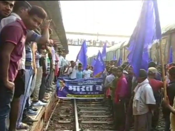 #BharatBandh over SC/ST protection act: Different groups including CPIML activists protest in Bihar's Arrah, block a train pic.twitter.com/ss4jn1C4ak