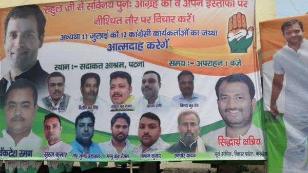 సార్వత్రిక ఎన్నికల్లో కాంగ్రెస్ పార్టీ ఘోరంగా ఓడిపోయింది. దీంతో ఓటమికి నైతిక బాధ్యత వహిస్తూ రాహుల్ గాంధీ అధ్యక్ష పదవీకి రాజీనామా చేశారు. సీడబ్ల్యూసీ నేతలు, సీనియర్ నేతలు, సోనియా, ప్రియాంక గాంధీలు చెప్పినా రాహుల్ వినిపించుకోలేదు. వారి విజ్ఞప్తితో 4 నెలలు చీఫ్గా కొనసాగుతానని చెప్పి .. ఇటీవలే అధికారికంగా అధ్యక్ష పదవీకి రాజీనామా చేశారు రాహుల్. తర్వాత తన ట్విట్టర్ ఖాతాలో అధ్యక్షుడికి బదులు .. కాంగ్రెస్ కార్యకర్తగా మార్చుకున్నారు. వివిధ వర్గాలు, కార్యకర్తల నుంచి వినతులు వస్తున్నా .. పాట్నాలో వెలిసిన పోస్టర్ మాత్రం ఒకింత ఆందోళనకు గురిచేస్తోంది.