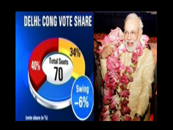 ఢిల్లీలో మాత్రం నువ్వా నేనా అన్నట్లు పోటీ ఉంటుందని సర్వేల్లో తేలింది. హంగ్ అసెంబ్లీకి ఢిల్లీలో అవకాశాలున్నట్లు స్పష్టమవుతోంది. కేజ్రీవాల్ ఆమ్ ఆద్మీ పార్టీ కూడా ఉనికిని చాటుకునే అవకాశం ఉంది. 70 అసెంబ్లీ సీట్లున్న ఢిల్లీలో కేజ్రీవాల్ పార్టీ ఏడు సీట్లలో విజయం సాధిస్తుందని సర్వేలో తేలింది. ఢిల్లీలో బిజెపి 30 సీట్లను సాధిస్తుందని, మెజారిటీకి ఆరు సీట్లు తక్కువ పడుతాయని సర్వే అంచనా వేసింది. కాంగ్రెసు 29 సీట్లు గెలుచుకుంటుందని సర్వేలో తేలింది.