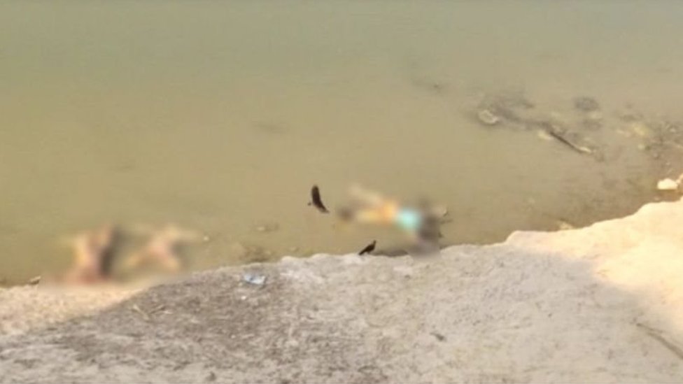నది ఒడ్డున ఇసుకలో అనేక మృతదేహాలను పాతిపెట్టారు. కొన్ని శవాలు బయటకి వచ్చేశాయి. వాటిని కుక్కలు పీక్కు తింటున్నాయి. కొన్ని శవాలు వికృతంగా కనిపించాయి. శవాలను బాగా లోతుగా పూడ్చి పెట్టకపోవడంతో అవన్నీ బయటకు కనిపిస్తున్నాయి.
