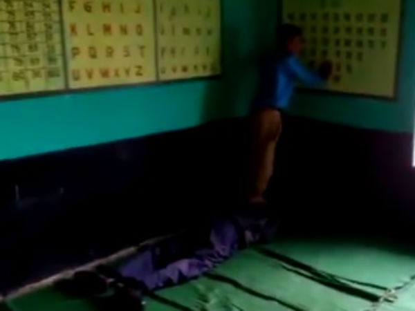 విద్యార్థుల ముందే ఉపాధ్యాయుడు నేలపై పడుకొని ఓ విద్యార్థితో కాలితో మసాజ్ చేయించుకొన్నాడు.ఈ తతంగాన్ని వీడియో తీసి సోషల్ మీడియాలో పోస్ట్ చేశారు.