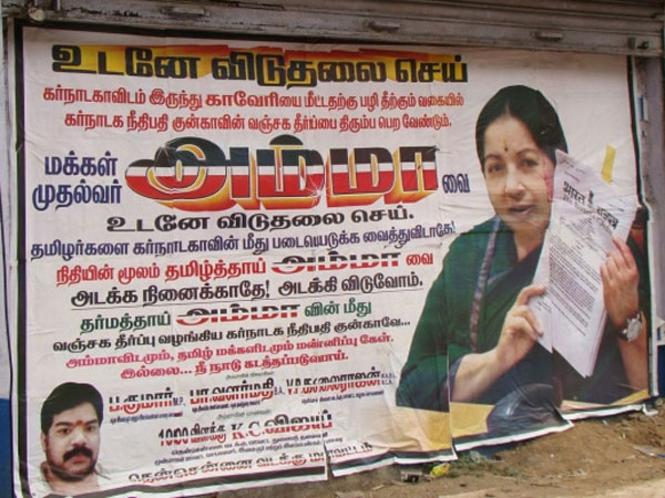కావేరి వివాదానికి ఆజ్యం పోస్తోన్న 'అమ్మ పోస్టర్' : అప్పుడలా..? ఇప్పుడిలా?