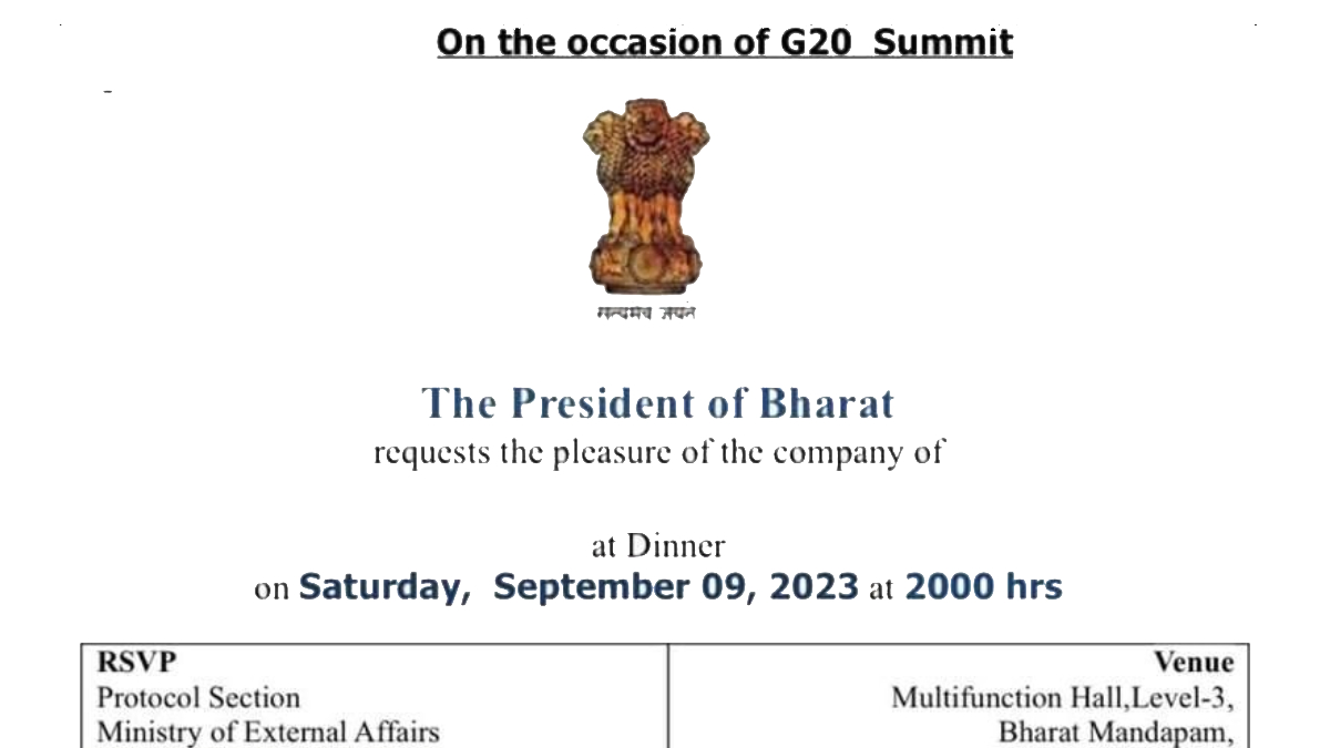ఈ నెల 8వ తేదీ నుంచి జీ20 దేశాల సదస్సు జరగబోతోంది. ఢిల్లీ వేదికగా జరిగే ఈ సదస్సుకు దేశ, విదేశీ అతిధుల్ని ఆహ్వానించారు. వీరికి పంపిన ఆహ్వన పత్రికల్లో ప్రెసిడెంట్ ఆఫ్ భారత్ పేరుతో ఆహ్వానాలు పంపారు. వాస్తవానికి ప్రెసిడెంట్ ఆఫ్ ఇండియాగా వెళ్లాల్సిన ఈ ఆహ్వానాలు కాస్తా ప్రెసిడెంట్ ఆఫ్ భారత్ పేరుతో వెళ్లడంతో అతిధులు కూడా కాస్త ఆశ్చర్యానికి లోనయ్యారు. తిరిగి దీన్ని నిర్ధారించుకునేందుకు ప్రయత్నించినట్లు తెలుస్తోంది.
