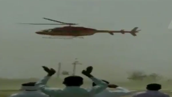 #WATCH Alwar: Chopper with Alwar BJP MP Mahant Balaknath onboard appeared to have lost control but regained it later and flew off. #Rajasthan pic.twitter.com/aIHaIHTMuh