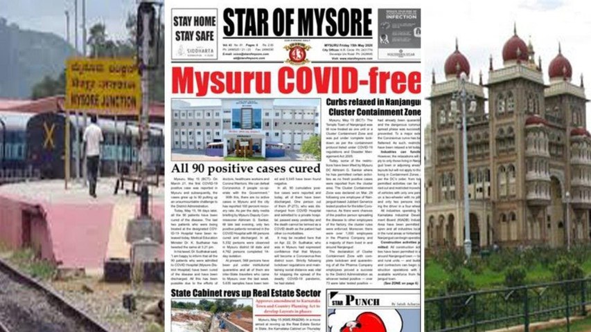 బెంగళూరు/ మైసూరు/ న్యూఢిల్లీ: కరోనా వైరస్ (COVID 19) మహమ్మారిని అరికట్టడానికి దేశం మొత్తం అనేక ప్రయత్నాలు చేస్తున్నది. ప్రపంచ వ్యాప్తంగా 215 దేశాల్లో 3 లక్షల మందికి పైగా కరోనా వైరస్ వ్యాధితో మరణించారు. భారతదేశంలో ఇప్పటి వరకు 2,752 మంది కరోనా వైరస్ కాటుకు బలి అయ్యారు. కర్ణాటకలోని రాచనగర మైసూరు నగరం నేడు ప్రపంచం దృష్టిలో పడింది. ప్రపంచ దేశాలకు ఈ రోజు మైసూరు నగరం రోల్ మోడల్ గా నిలిచింది. మైసూరు జిల్లాలో 90కి పైగా కరోనా పాజిటివ్ కేసులు నమోదు కావడంతో, అందరికి వ్యాధి నయం చెయ్యడం, ఈ రోజు ఒక్క కరోనా పాజిటివ్ ఆక్టీవ్ కేసు లేకుండా చూడటం ఒక్క మైసూరు జిల్లాకే చెందింది. ప్రధాని నరేంద్ర మోదీ భారతదేశం మొత్తం లాక్ డౌన్ విధించక వారం రోజుల ముందే మైసూరులో లాక్ డౌన్ అమలు చేసి నేడు ప్రపంచానికే ఆదర్శంగా నిలిచింది.