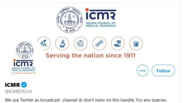 ''సంస్థ ట్విటర్ ఖాతాలో ఇబ్బందులు తలెత్తాయి. మా హ్యాండిల్ నుంచి ప్రభుత్వ వ్యతిరేక పోస్టులు వస్తున్నట్లు పలువురు చెప్పడంతో సేవల్ని నిలిపేశాం. లోపాలను సరిదిద్దడానికి అవసరమైన చర్యలు చేపట్టాం. ఈ కారణంగా ప్రజలు ఏదైనా అసౌకర్యానికి లోనయితే క్షమాపణలు కోరుతున్నాం'' అని ఐసీఎంఆర్ ప్రకటన చేసింది.