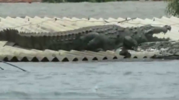 వీడియో: ఇంటి టాప్ ఎక్కిన మొసలి: బొమ్మ అనుకున్నారట!