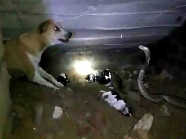 కుక్కకు ఏడుగురు పిల్లలు. ఓ వైపు పప్పీలపై పాము బుసకొడుతూ మీదకు వస్తోంది. చిన్న కుక్కపిల్లలు అరుస్తున్నాయి. మరోవైపు వాటిని కాపాడే ప్రయత్నంలో తల్లి కుక్క తీవ్రంగా శ్రమిస్తోంది. ఈ విషసర్పాన్ని ఎదుర్కునేందుకు తల్లి కుక్క గట్టిగా ప్రయత్నించింది. ఈ క్రమంలోనే గట్టిగా మొరుగుతోంది. ఎవరైనా సహాయం చేస్తారా అని ఎదురుచూడ సాగింది. అయినప్పటికీ పాముపైకి ప్రాణాలు తెగించి దాడి చేసింది. ముందు తల్లి కుక్కను పక్కకు తొలగిస్తే ఆ తర్వాత పప్పీల పని పట్టొచ్చనుకుందో ఏమో ఈ నాగుపాము... తల్లి కుక్కపై దాడి చేసేందుకు ముందుకు వెళ్లింది. అప్పటికే రెండు చిన్న పప్పీలపై కాటు వేయడంతో ఆ కుక్క పిల్లలు చనిపోయాయి.