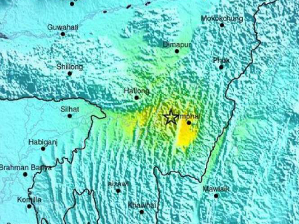 రిక్టర్ స్కేలుపై 6.8 తీవ్రతతో భూకంపం సంభవించింది. మణిపూర్ రాజధాని ఇంపాల్లో భవనాలు కూలి ఇద్దరు మృతి చెందారు. దీంతో ఇంపాల్లో విద్యుత్ సరఫరాను అధికారులు నిలిపివేశారు. ఇంపాల్కు 33 కిలోమీటర్ల దూరంలో, టామెంగ్లాంగ్ జిల్లాలో 17 కి.మీ లోతున భూకంపకేంద్రం ఉన్నట్టు గుర్తించారు.