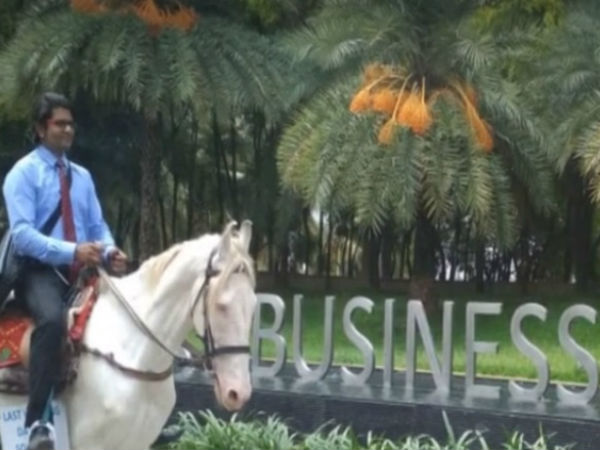 కాగా, సదరు టెక్కీ ఎనిమిదేళ్లుగా ఉద్యోగం చేస్తున్నాడు. కానీ జీవితం నరకప్రాయమైంది. అందుకు మొదటి కారణం ట్రాఫిక్ ఇబ్బందులైతే, రెండో కారణం సాప్టువేర్ రంగంలో కొనసాగుతున్న శ్రమదోపిడీ. దీంతో విసుగెత్తి అందుకు నిరసనగా గుర్రం మీద ఆఫీసుకొచ్చాడు. లైఫ్లో ఇంకెప్పుడు మల్టీ నేషనల్ కంపెనీలో పని చేయనని చెప్పాడు. కాగా, ఇతనిది రాజస్థాన్.
