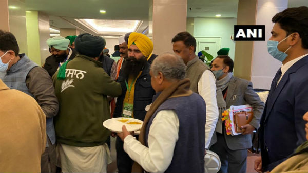 చట్టాల విషయంలో కేంద్రం తీరును నిరసిస్తూ, లంచ్ సమయంలో ప్రభుత్వం ఏర్పాటు చేసిన ఆహారాన్ని తీసుకునేందుకు రైతులు నిరాకరించారు. స్థానిక గురుద్వారాలోని లంగర్ (కమ్యూనిటీ కిచెన్) లో వండి తెచ్చుకున్న భోజనాన్నే రైతులు తిన్నారు. రైతు సంఘాల నేతలు నేలపైనే కూర్చొని భోజనం లాగించేశారు. దీంతో..