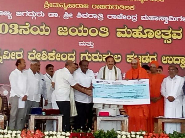 ఇదే సందర్బంలో కొడుగు జిల్లాలో భారీ వరదల కారణంగా నిరాశ్రులు అయిన వారిని ఆదుకోవడానికి సూత్తూరు మఠం నుంచి ముఖ్యమంత్రి సహాయనిధికి రూ. 50 లక్షల చెక్కును శ్రీ శివరాత్రి దేశీకేంద్ర స్వామీజీ సీఎం కుమారస్వామికి అందించారు.