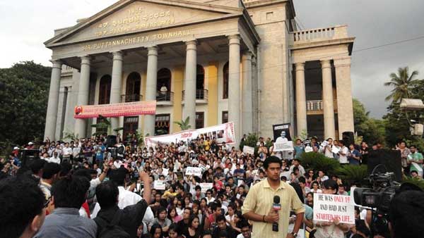 144 సెక్షన్ అమలులో ఉన్నప్పటికీ.. విద్యార్థులు నిరసన ప్రదర్శనకు దిగారు. బెంగళూరు నడిబొడ్డున ఉండే సర్ పుట్టణ్ణ చెట్టి టౌన్ హాల్ వద్ద పెద్ద సంఖ్యలో గుమికూడారు. చరిత్రకారుడు రామచంద్రగుహ విద్యార్థులతో కలిశారు. అనంతరం వారు ప్రదర్శనగా మెజస్టిక్ వైపు బయలుదేరి వెళ్లడానికి ప్రయత్నించగా.. పోలీసులు అడ్డుకున్నారు. టౌన్ హాల్ వద్ద నుంచి కదలడానికి నిరాకరించారు. చుట్టూ బ్యారికేడ్లను అమర్చారు. 144 సెక్షన్ అమల్లో ఉందని, దీన్ని ఉల్లంఘించిన వారిని అరెస్టు చేస్తామని హెచ్చరించారు.