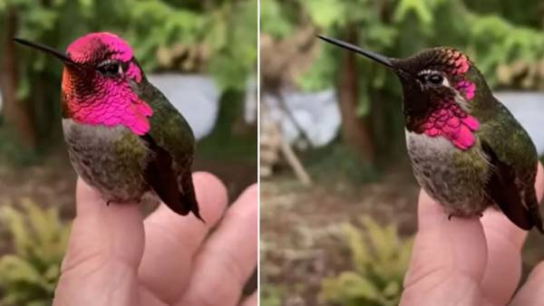 ఒరెగాన్లో ఒకతను పెరటిలో నేలపై పడి ఉన్న పక్షి ఉంది. అతను చేతిలోకి తీసుకుని పట్టుకున్నాడు. అతను స్వతగహా ఫోటోగ్రాఫర్.. చేతిలో ఉండగా వీడియో తీశాడు. నిమిషం పాటు పక్షి ఉండగా.. అదీ రంగులను మార్చుకుంది. తర్వాత పక్షి ఎగిరిపోయింది. తన మొహంపై నుంచి వెళ్లిపోయిందని.. ఇదీ తన జీవితకాలం గుర్తుంచుకుంటానని తెలిపారు. హమ్మింగ్ బర్డర్స్ థిక్ కలర్లో ఉంటాయని సైన్స్ డైలీ పేర్కొంది. రెయిన్ బో కలర్లో ఉంటాయని తెలిపింది.