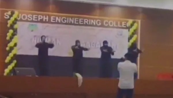 ఓ కాలేజీకి చెందిన నలుగురు విద్యార్థులు బురఖా ధరించి డ్యాన్స్ చేయడంతో హిజాబ్ పై మళ్లీ చర్చ మొదలైంది. మంగుళూరులోని సెయింట్ జోసెఫ్ ఇంజనీరింగ్ కాలేజీలో నలుగురు విద్యార్థులు బురఖా ధరించి డ్యాన్స్ చేశారు.