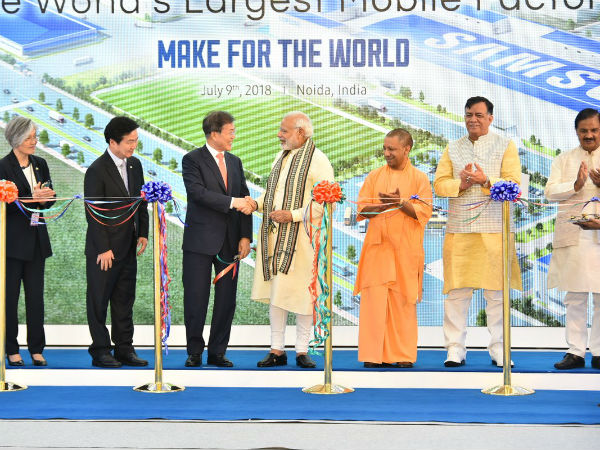 న్యూఢిల్లీ: ప్రపంచంలోనే అతిపెద్ద మొబైల్ ఫోన్ల తయారీ పరిశ్రమను ప్రధాని నరేంద్ర మోడీ, దక్షిణకొరియా అధ్యక్షుడు మూన్ జై సంయుక్తంగా ప్రారంభించారు. దక్షిణకొరియా దిగ్గజ ఎలక్ట్రానిక్ ఉత్పత్తుల సంస్థ శామ్సంగ్ నోయిడాలో ఈ ఫ్యాక్టరీని ఏర్పాటు చేసింది. దీని ద్వారా ఏటా 120 మిలియన్ల మొబైల్ ఫోన్లను ఉత్పత్తి చెయ్యాలని శామ్సంగ్ భావిస్తోంది.