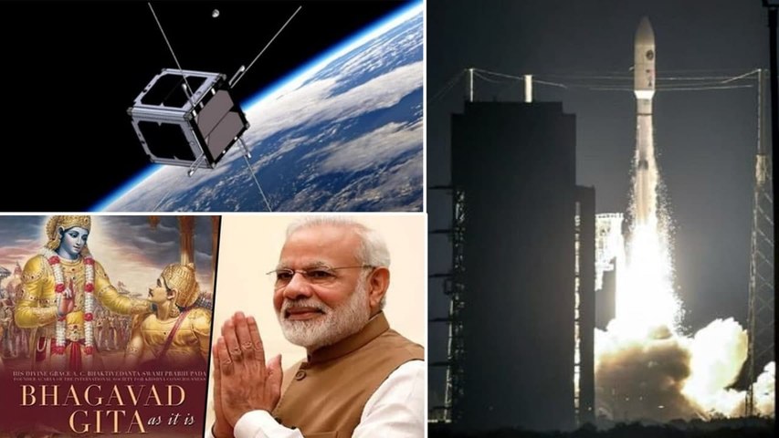 ఇస్రో అరుదైన ప్రయోగం- తొలి ఆత్మనిర్భర్ ప్రైవేట్ శాటిలైట్ ప్రయోగం- భగవద్గీత, మోడీ ఫొటోతో