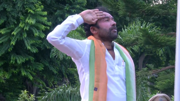 Union Minister for Culture & Tourism G Kishan Reddy hoists national flag at his residence on India's 75th #IndependenceDay