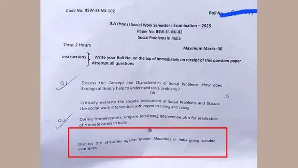 ఈ క్వశ్చన్ పేపర్ ను ప్రొఫెసర్ వీరేంద్ర బాలాజీ షాహారే రూపొందించారు. ఈ పరీక్ష పేపర్ లో 'దేశంలో ముస్లిం మైనారిటీలపై జరుగుతున్న దారుణాలను చర్చించేందుకు తగిన ఉదాహరణలు ఇవ్వండి' అనే ప్రశ్నకు సమాధానం ఇవ్వమని పేర్కొన్నారు. ఈ ప్రశ్నకు జవాబు రాస్తే 15 మార్కులు అని తెలిపారు. అయితే ఈ క్వశ్చన్ పై సర్వత్రా విమర్శలు వెల్లువెత్తాయి. ఈ మేరకు యూనివర్సిటీకు ఫిర్యాదులు వచ్చాయి. దీంతో ఆగ్రహించిన యూనివర్సిటీ యాజమాన్యం వెంటనే ఆ ప్రొఫెసర్ ను విధుల నుంచి సస్పెండ్ చేస్తూ కీలక నిర్ణయం తీసుకుంది. మరోవైపు పరీక్షలో ఇలాంటి ప్రశ్న ఇవ్వడంపై సదరు ప్రొఫెసర్ ఇంతవరకు స్పందించకపోవడం గమనార్హం.