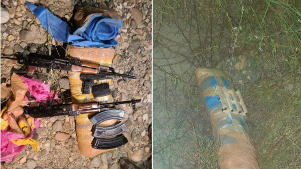 ఆర్మీ, జమ్మూకాశ్మీర్ పోలీసులు సయుక్తంగా చేపట్టిన సెర్చ్ ఆపరేషన్ లో డ్రోన్ ద్వారా జారవిడిచిన భారీ ప్యాకేజీని స్వాధీనం చేసుకున్నట్లు అధికారులు మీడియాకు తెలిపారు. పాకిస్తాన్ నుంచి వచ్చిన ఆ ప్యాకేజీలో రెండు ఏకే-47 రైఫిళ్లు, మూడు మ్యాగజీన్లు, 90 రౌండ్ల బుల్లెట్లు, ఓ పిస్టల్ ఉన్నాయని చెప్పారు. ఈ మేరకు ఆ ప్యాకేజీ, అందులోని ఆయుధాల ఫొటోలను విడుదల చేశారు. వరుసగా డ్రోన్ ప్యాకేజీలు లభ్యమవుతుండటంతో గాలింపు, నిఘా పెంచామని అధికారులు చెప్పారు. రెండు రోజుల కిందట జమ్మూ కశ్మీర్ డీజీపీ దిల్బాగ్ సింగ్ మీడియాతో మాట్లాడుతూ డ్రోన్ల ద్వారా ఆయుధాలు తరలిస్తోన్న పాకిస్తాన్ ను అడ్డుకోడానికి అన్నిరకాలుగా ప్రయత్నిస్తున్నామనడం తెలిసిందే.