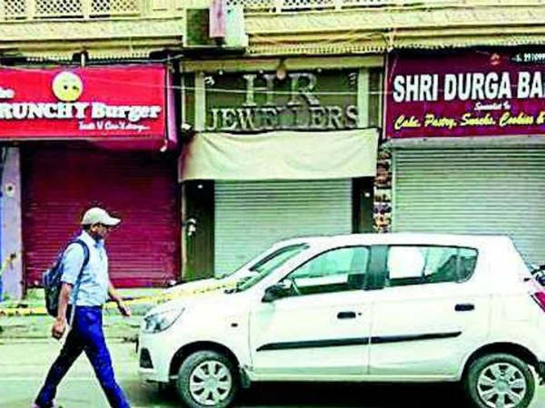 వివరాల్లోకి వెళితే... మంగళవారం సాయంత్రం నాలుగు గంటలకు హేమంత్ అతని 13 ఏళ్ల కుమారుడితో కలిసి దుకాణంలో మాట్లాడుతుండగా...ముగ్గురు దొంగలు హెల్మెట్లు ధరించి దుకాణంలోకి చొరబడ్డారు. ముందుగా దుకాణంలో పనిచేసే అశోక్ కుమార్ అనే వ్యక్తిపై తుపాకి ఎక్కుపెట్టి ఓనర్ను పిలవాల్సిందిగా బెదిరించారు. ఇది గమనించిన హేమంత్ కుమార్ అక్కడికి వచ్చాడు. వెంటనే హేమంత్ను అశోక్ను కింద పడుకోవాలని దొంగలు బెదిరించారు. లోపల ఉన్న హేమంత్ కుమారుడిని కూడా బయటకు వచ్చి కిందపడుకోవాలని బెదిరించారు. పిల్లాడిని వదిలేయాలని నగలను మొత్తం తీసుకెళ్లమని భయంతో చెప్పాడు హేమంత్.