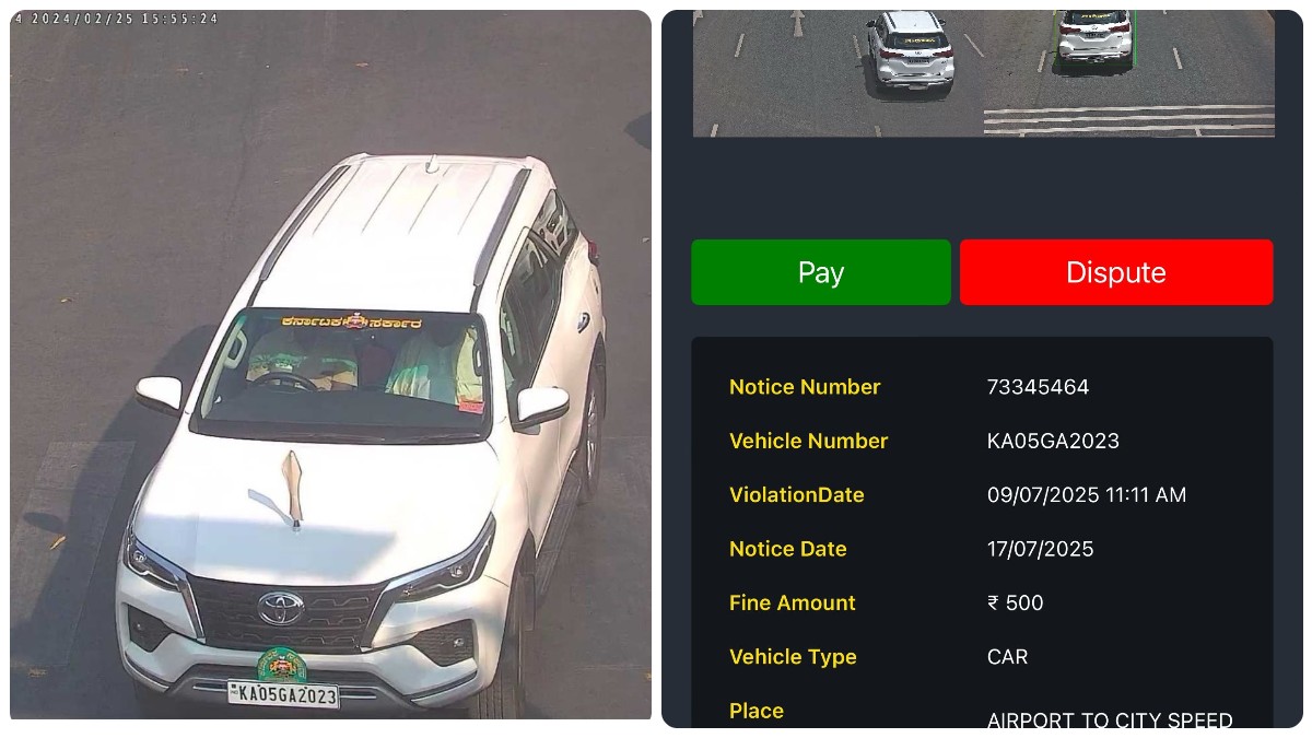 ఉన్న నిఘా కెమెరాలు ముఖ్యమంత్రి టయోటా ఫార్చ్యూనర్కు సంబంధించిన బహుళ ఉల్లంఘనలను నమోదు చేసినట్లు ట్రాఫిక్ పోలీసులు తెలిపారు. ఈ ఉల్లంఘనలలో జనవరి ,ఆగస్టు 2024 మధ్య ఆరు సీట్బెల్ట్ ధరించని సందర్భాలు ,ఒక అతివేగంగా వాహనం నడిపిన కేసు ఉన్నాయి. ప్రతి సీట్బెల్ట్ ఉల్లంఘనలోనూ, ముఖ్యమంత్రి సిద్ధరామయ్య ప్రయాణీకుల సీటులో ప్రయాణిస్తున్నట్లు వారు గుర్తించారు. తాజా ఉల్లంఘన ఆగస్టులో నమోదైంది.