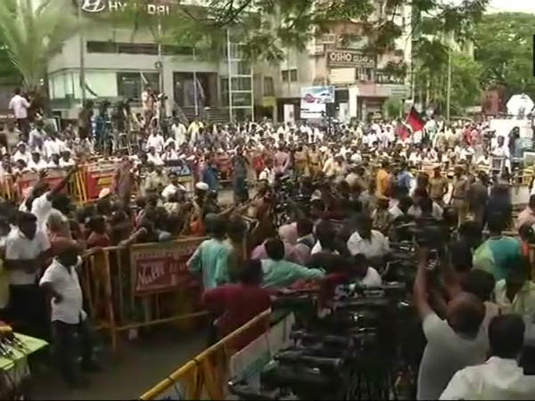 Supporters gather outside Chennai's Kauvery Hospital where DMK President M. Karunanidhi is undergoing treatment. The hospital had yesterday stated a decline in his medical condition. #TamilNadu pic.twitter.com/ajMbZ01poQ