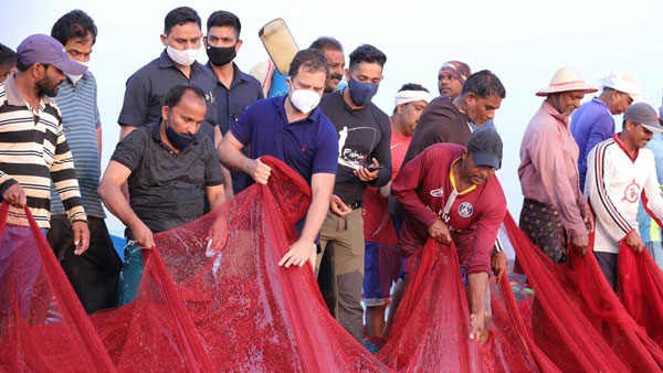 తిరువనంతపురం: అసెంబ్లీ ఎన్నికలు దగ్గరపడుతున్న నేపథ్యంలో కేరళ రాష్ట్రంలో కాంగ్రెస్ నేత రాహుల్ గాంధీ రెండ్రోజులుగా ఇక్కడ పర్యటిస్తున్నారు. బుధవారం థంగస్సెరీ బీచ్లో మత్స్యకారులను కలిశారు. అంతేగాక, వారితో కలిసి పడవలో ఎక్కి చేపలను పట్టేందుకు వల కూడా వేశారు.